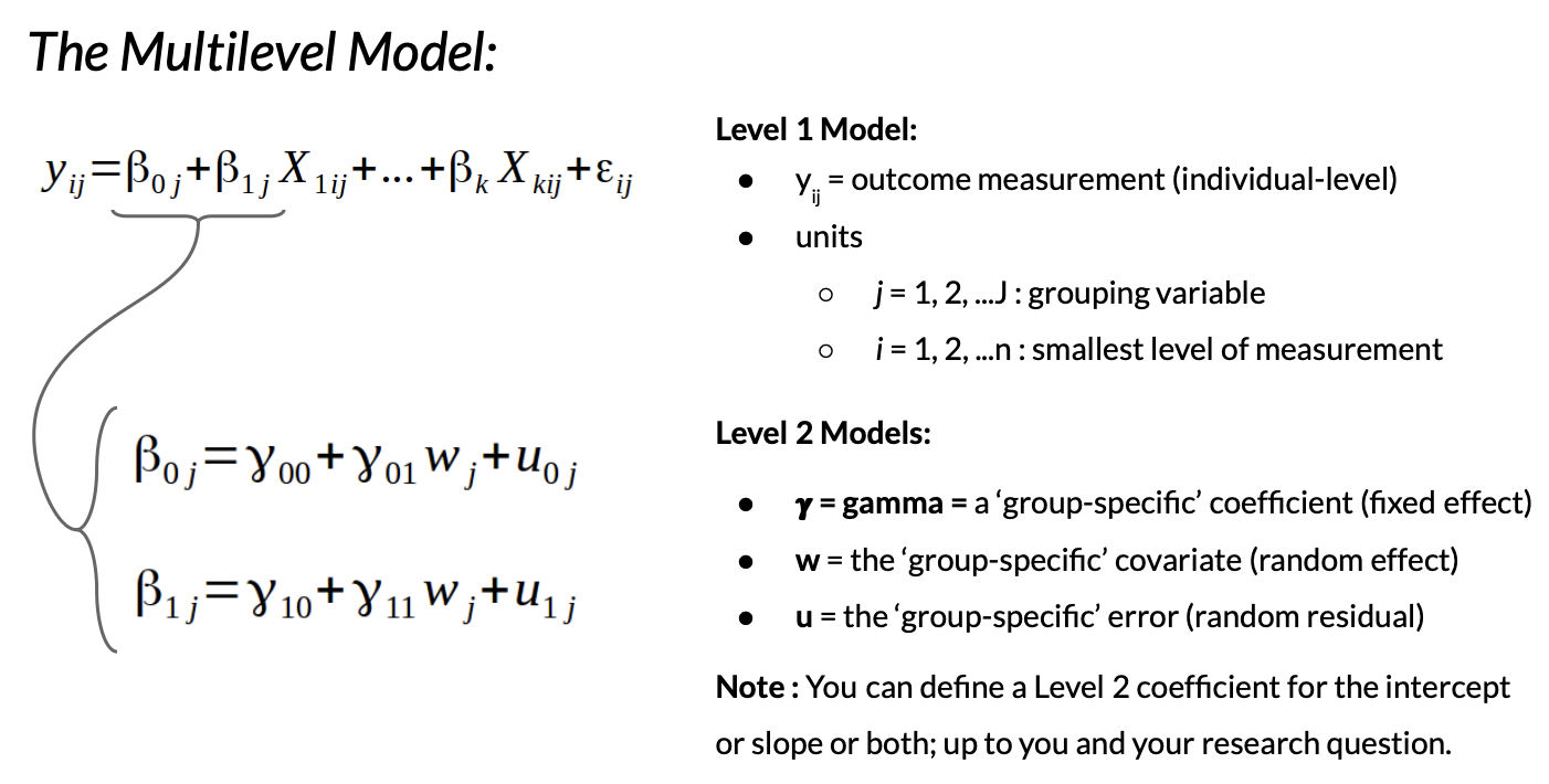 While we could just account for group variation by adding this to our model as dummy-coded group identifiers…
