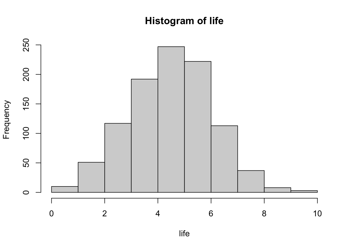 life <-array() # WHAT HAPPENS IF I DO THIS????for(i inc(1:1000)){ x <-replicate(10, sample(coinflip, 1)) life[i] <-sum(x)}life