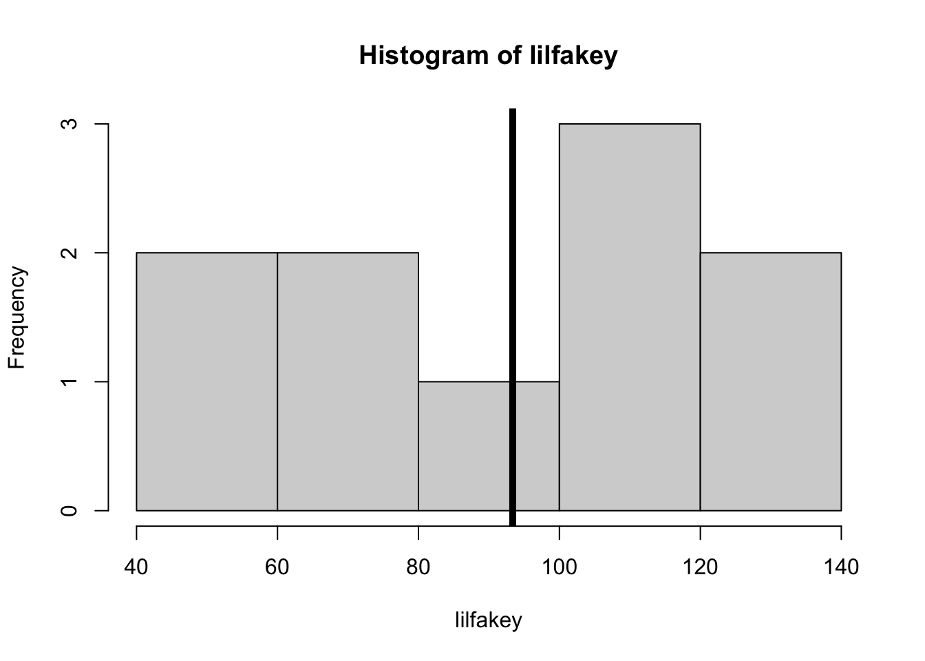hist(lilfakey)abline(v =mean(lilfakey), lwd =5)