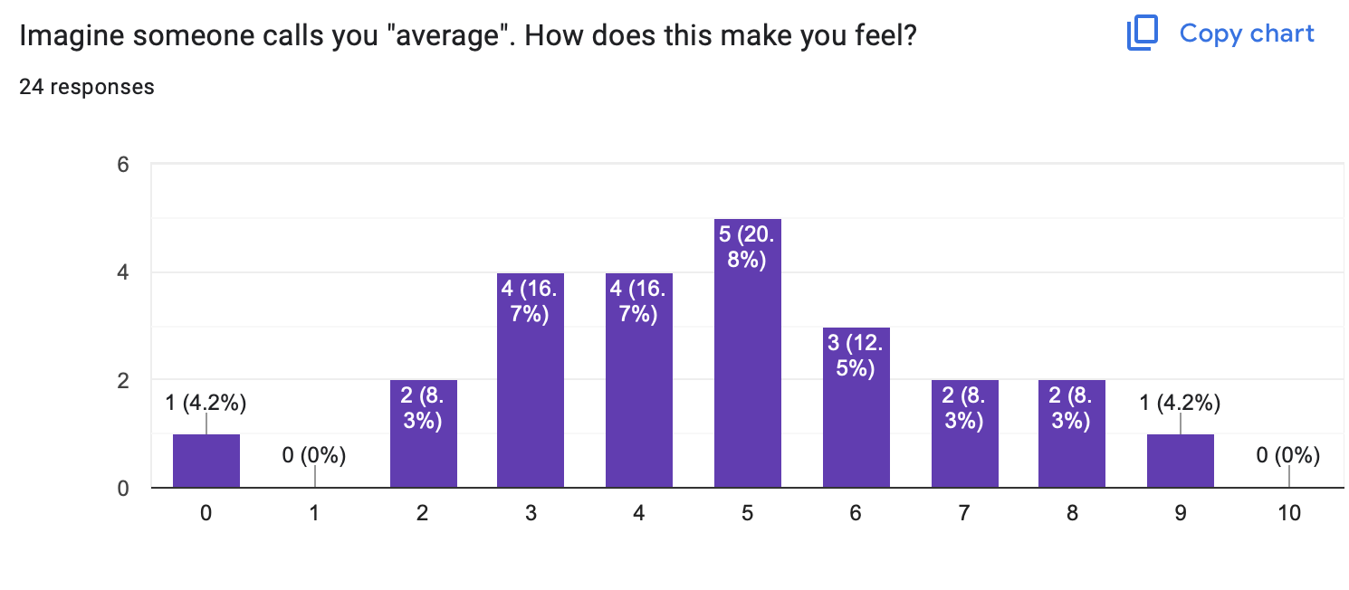 Remember that in the onboarding survey, we saw people rated their own skills as lower than their classmates’ skills.