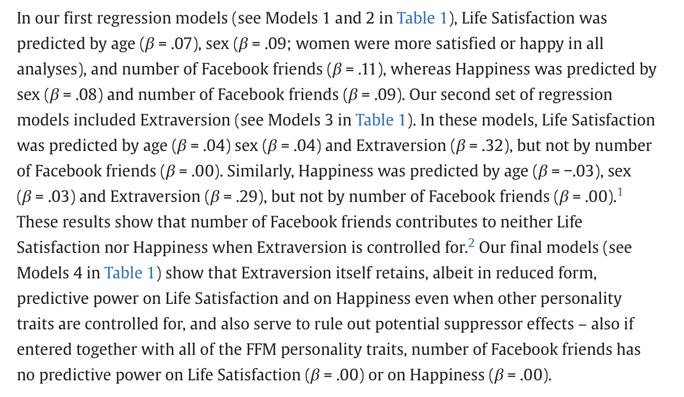The data below are from a REAL-LIFE study, where researchers studied the relationship between Life Satisfaction, demographic variables, the number of facebook friends that a person had, and other personality variables.