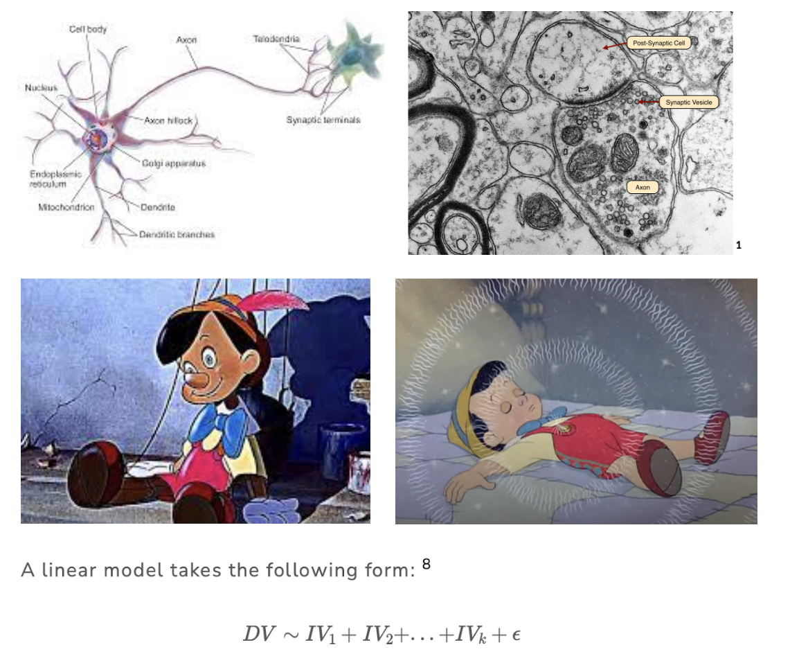 - Work on Lab Question. What’s a prediction about people that you made today? What information did you use to make this prediction? How did (or could) you use this prediction to influence outcomes? Were you valid in your predictions? Finally, write a linear model that defines the prediction (and information that you used) as a formula (e.g., DV ~ IV1 + IV2 + … + error).