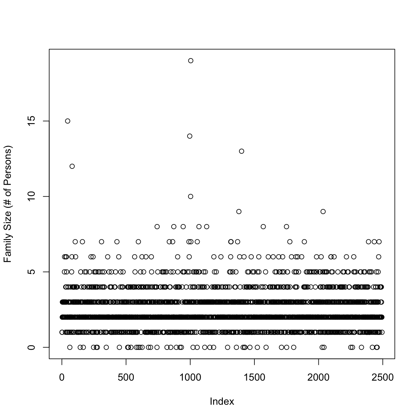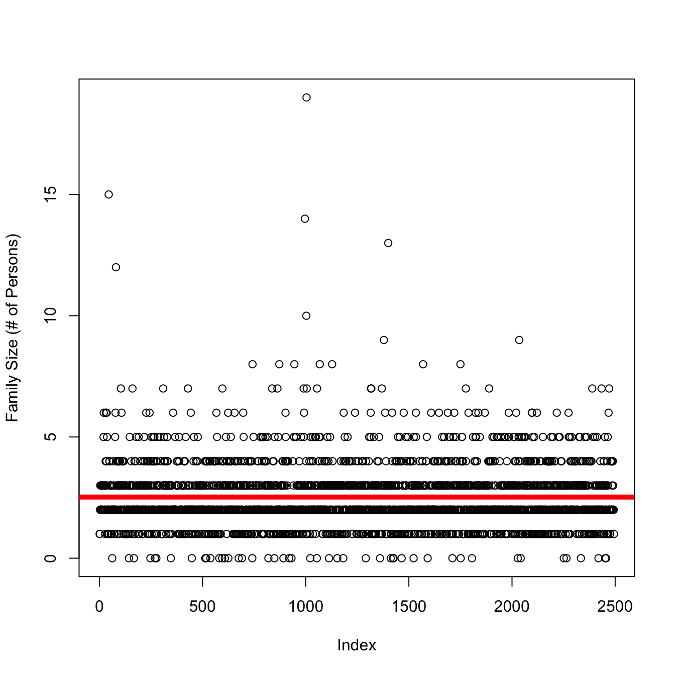 The mean family size in this dataset is :
