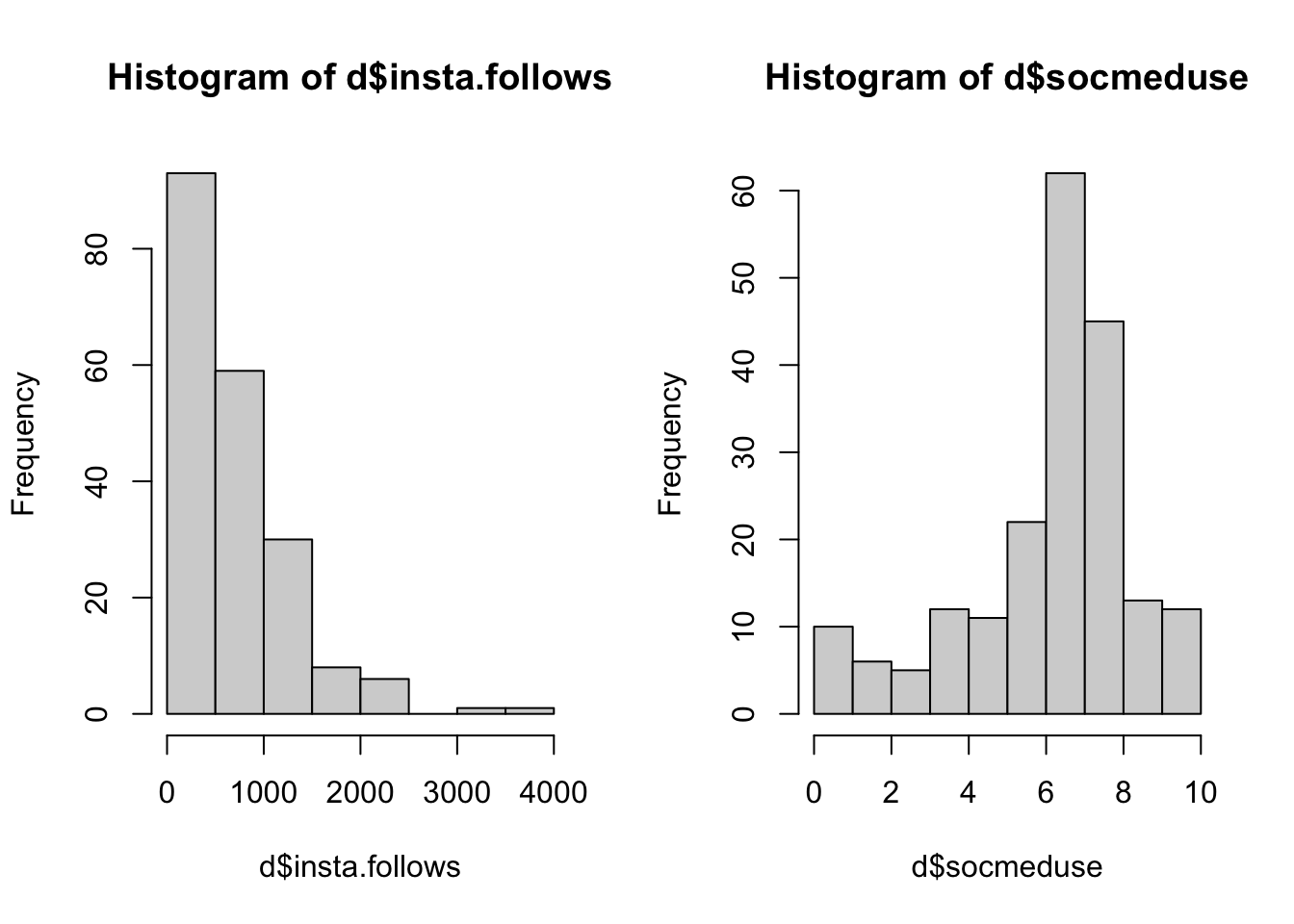 n <-length(na.omit(d$insta.follows)) # total number of individuals; omitting missing data.sqrt(SST/(n-1)) # the equation for the standard deviation