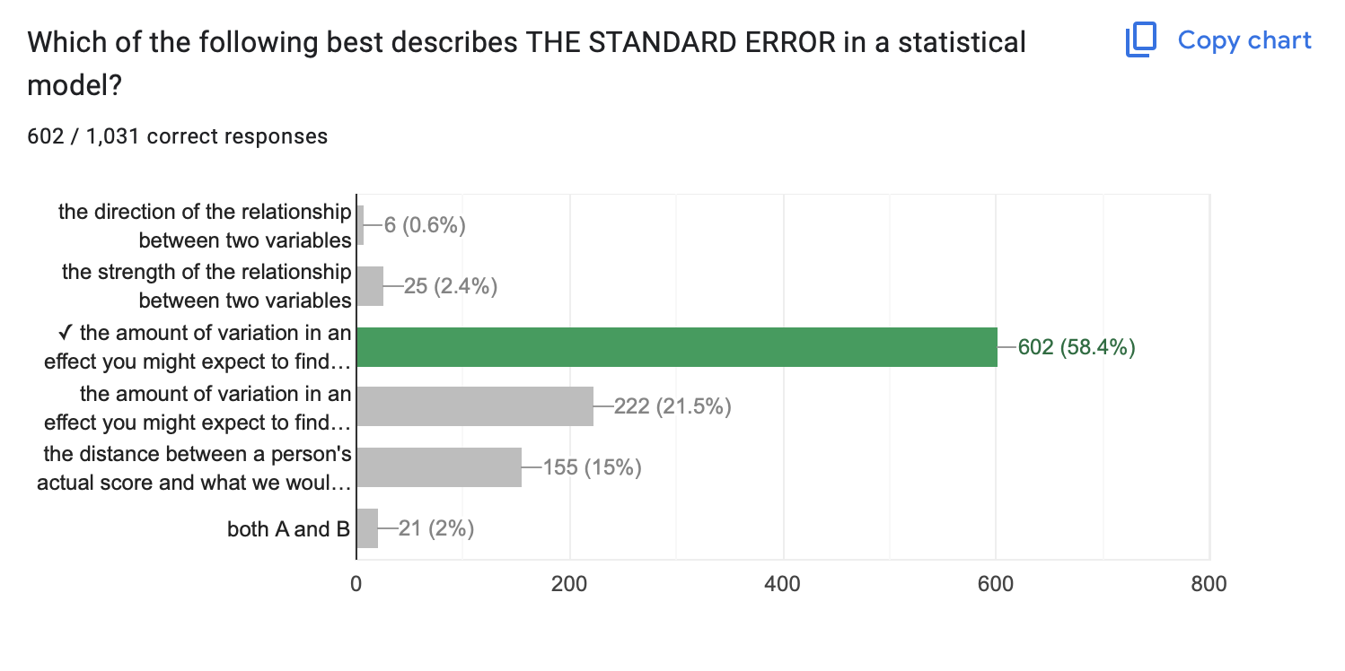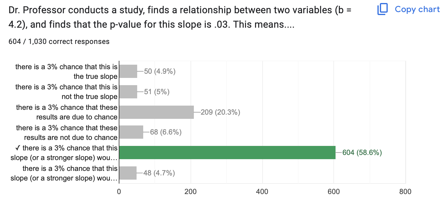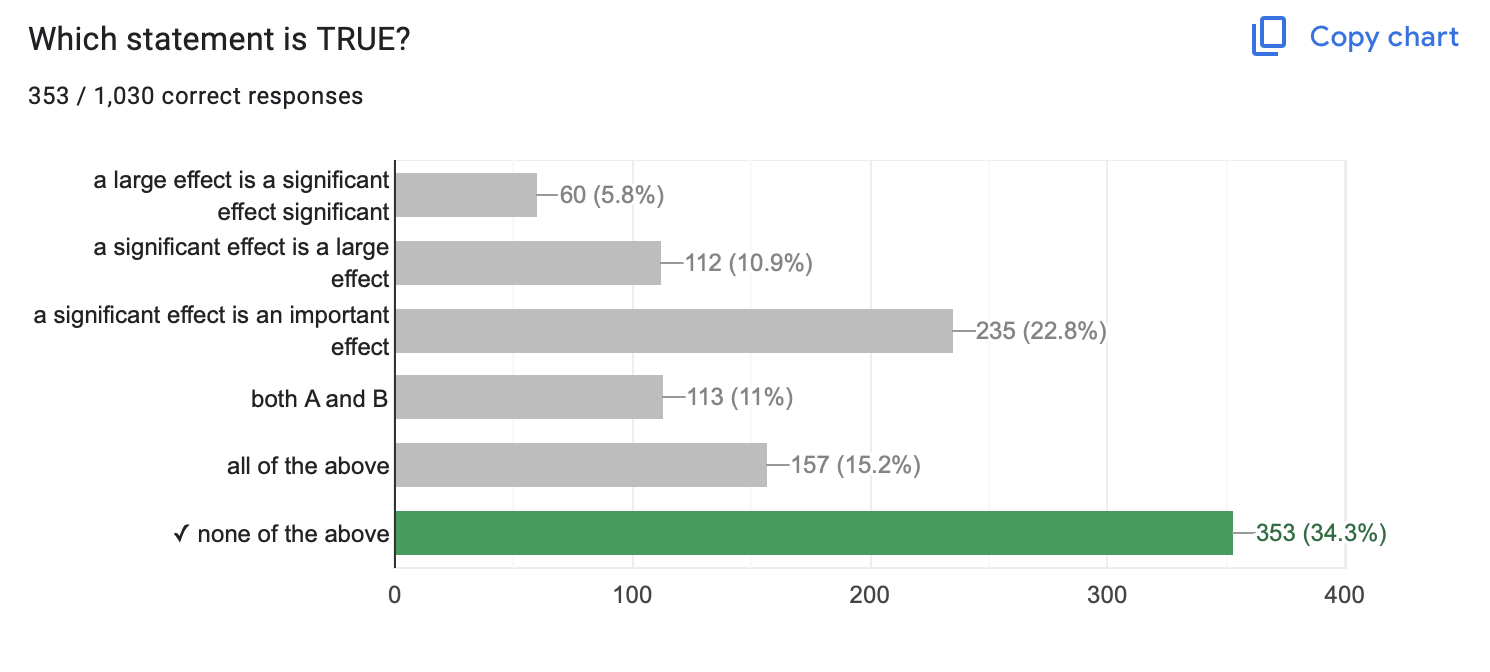 Note : I used last semester’s dataset for these examples, so you will likely get different results if you try and replicate in this semester’s class; a good example of how NHST doesn’t really tell us whether the results are “truth” or not, or whether they will replicate, etc.