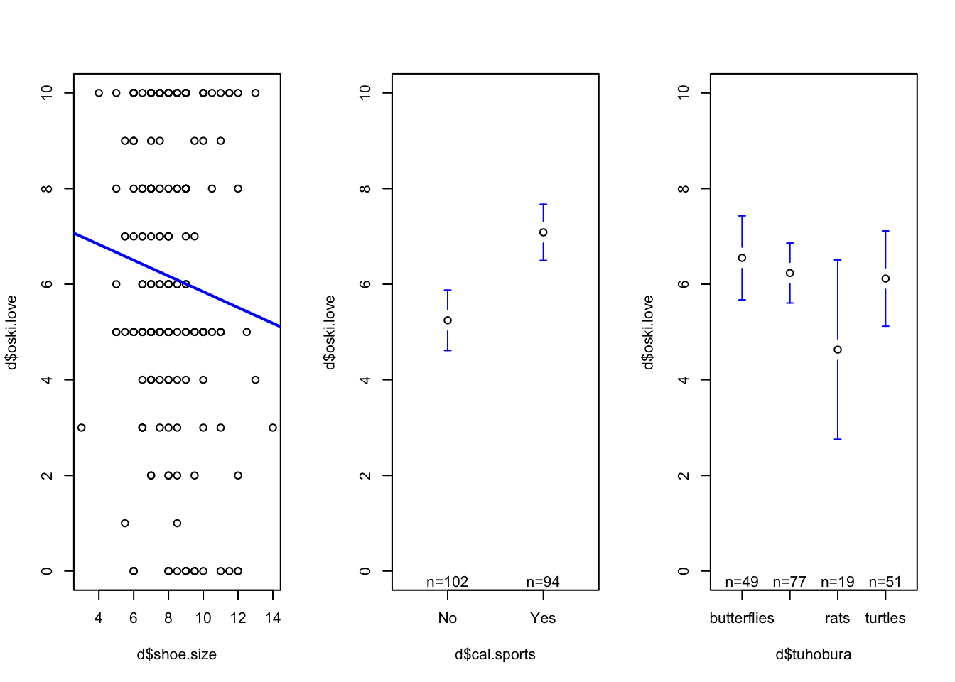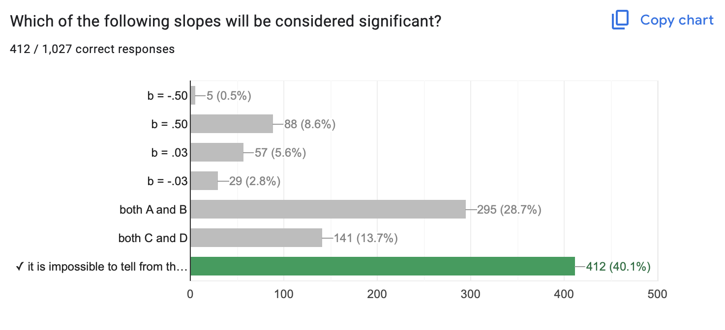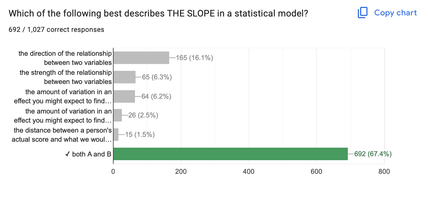 Note : I used last semester’s dataset for these examples, so you will likely get different results if you try and replicate in this semester’s class; a good example of how NHST doesn’t really tell us whether the results are “truth” or not, or whether they will replicate, etc.