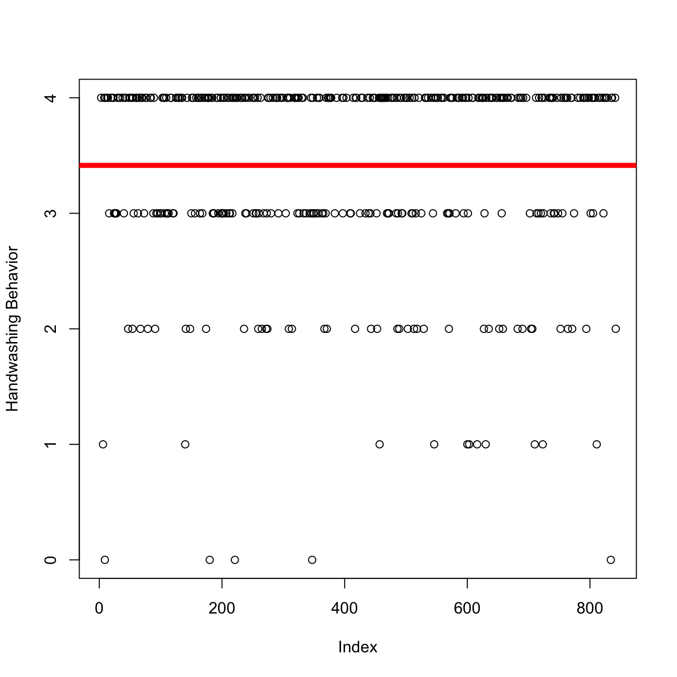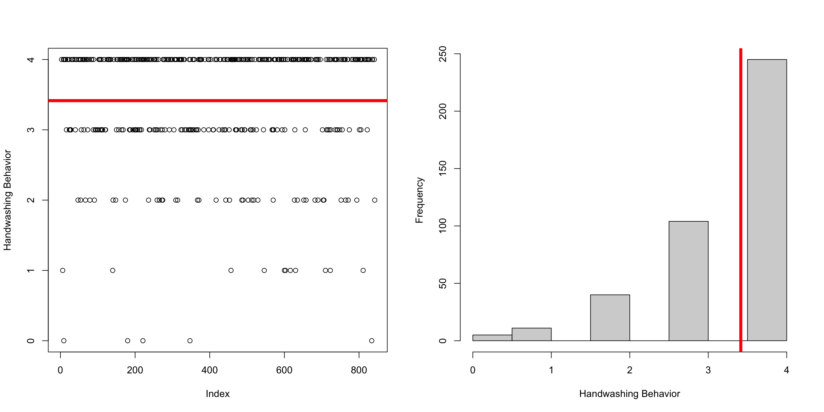 The histogram organizes the data, but you can see the same patterns in both graphs. The Mean = 3.4148148