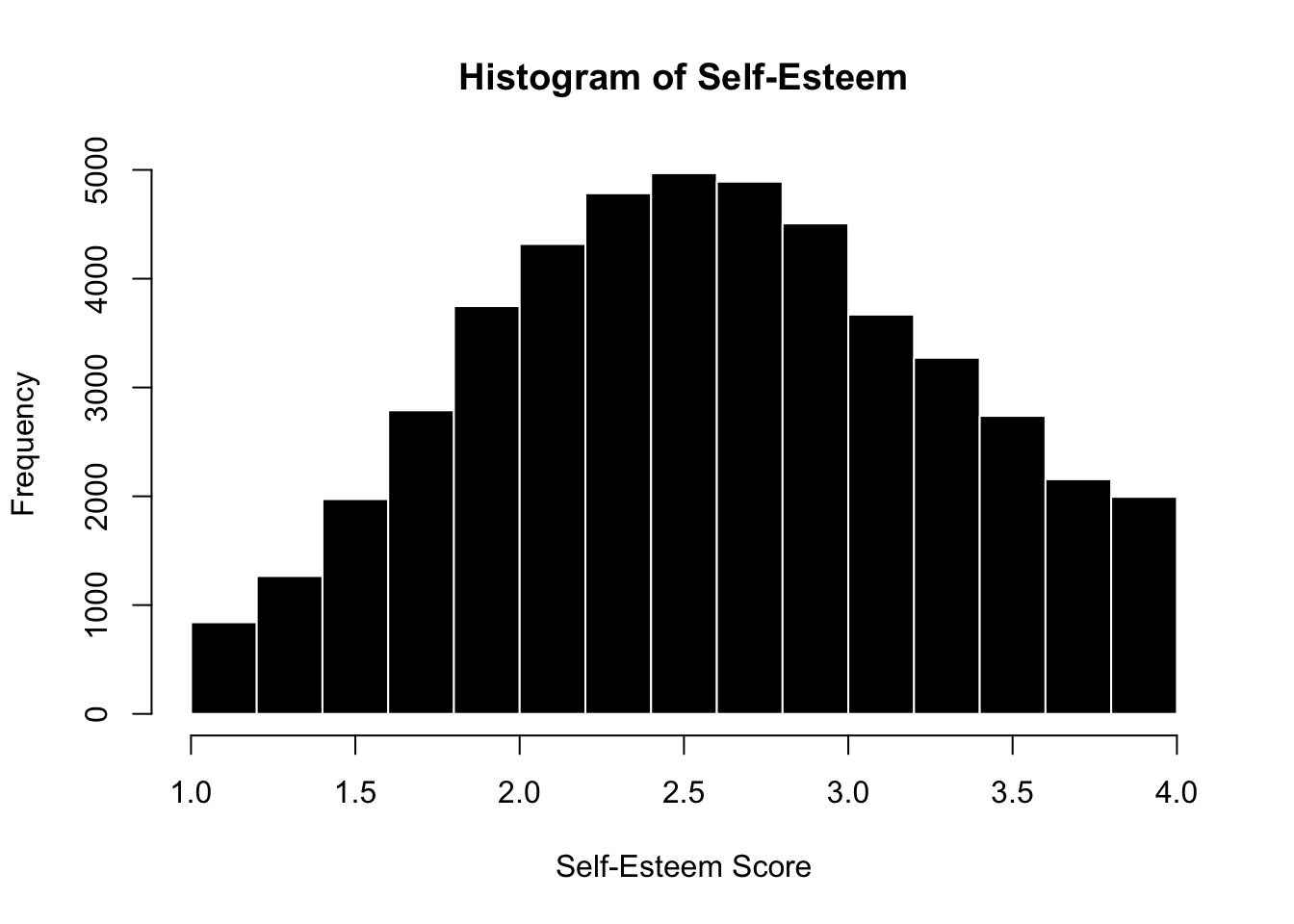 xlab = "Self-Esteem Score", breaks = 15)