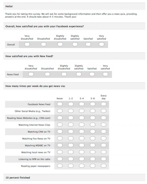 Below is one example from some survey when I used to be on Facebook. If they changed their graphic design since I was last on, it’s probably because of some survey feedback they received.