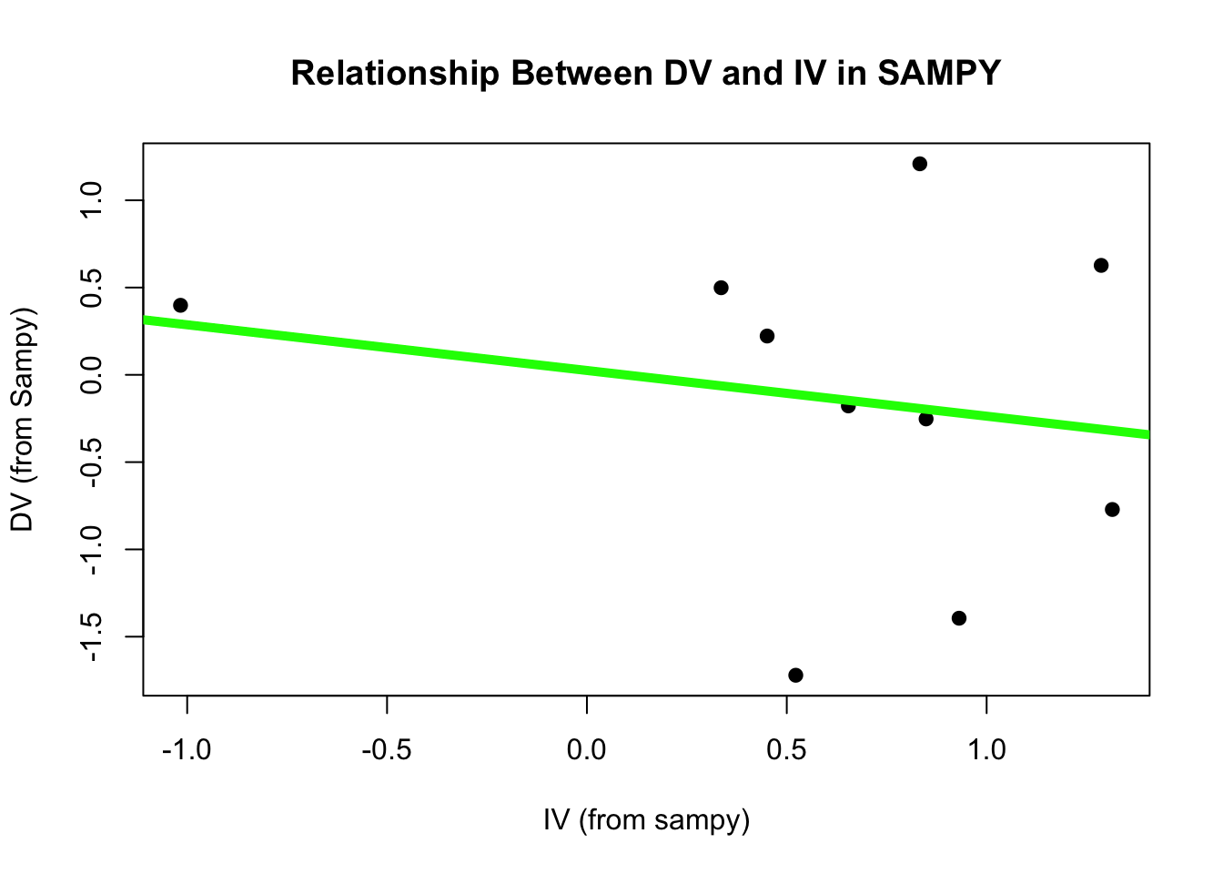 R confirms that there is no relationship between these two variables - the slope for the IV rounds (to ten decimal places) to zero.