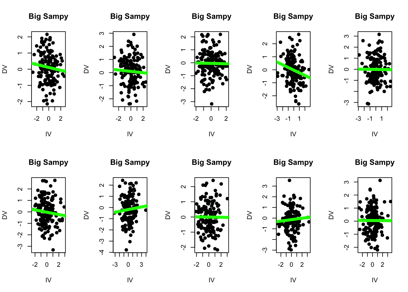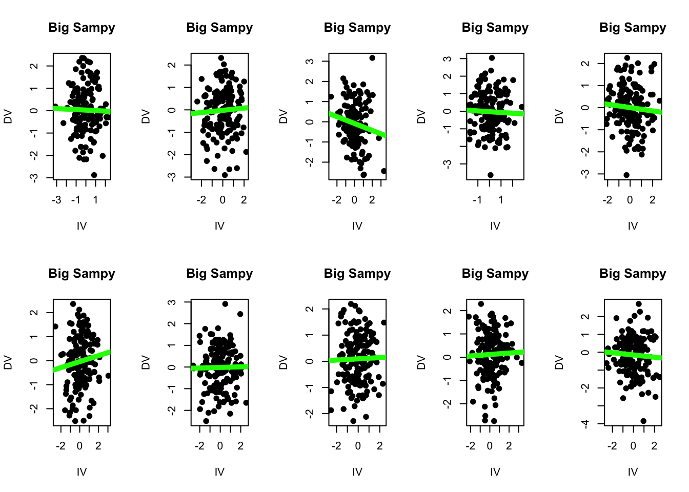 So to recap, we have a population of data (40,000 individuals) for whom the “true” relationship is zero.