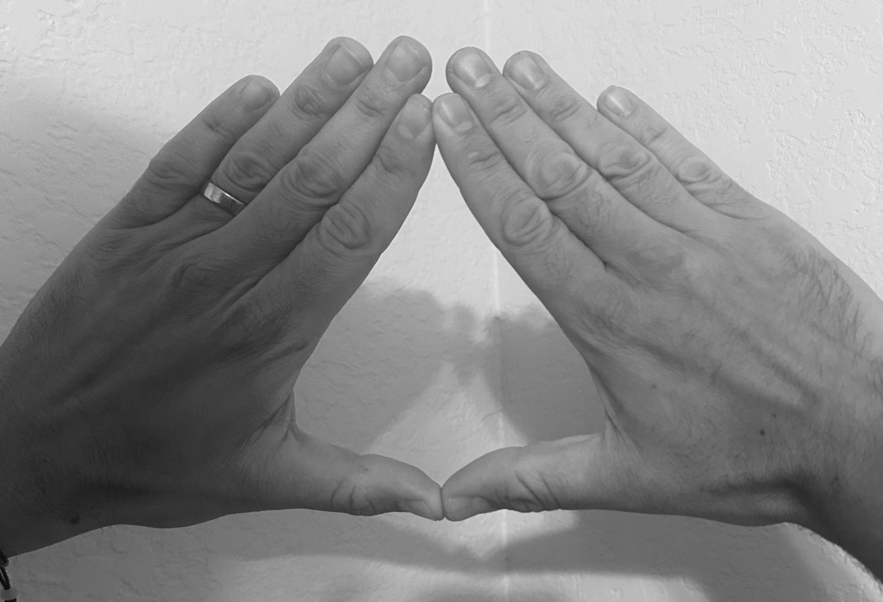 Okay, this may seem a little strange, but I’ll need your full attention for this part of the chapter. Please place your left and right hand thumbs and index fingers together to make a triangle with your two hands. Spread your other fingers forward, so you are using your full hand to make this power triangle.